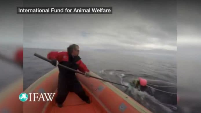 鯨魚身驅龐大,被一般捕魚網纏著的意外時有發生。加拿大就有一位漁民就當了鯨魚救助活動超過15年,主要為被魚網緊纏的鯨魚解網。但不幸的意外終於發生,數日前他解放了一條被捕魚網纏擾著的鯨魚後,突然發生意外,竟然還是這條鯨魚做了殺手。