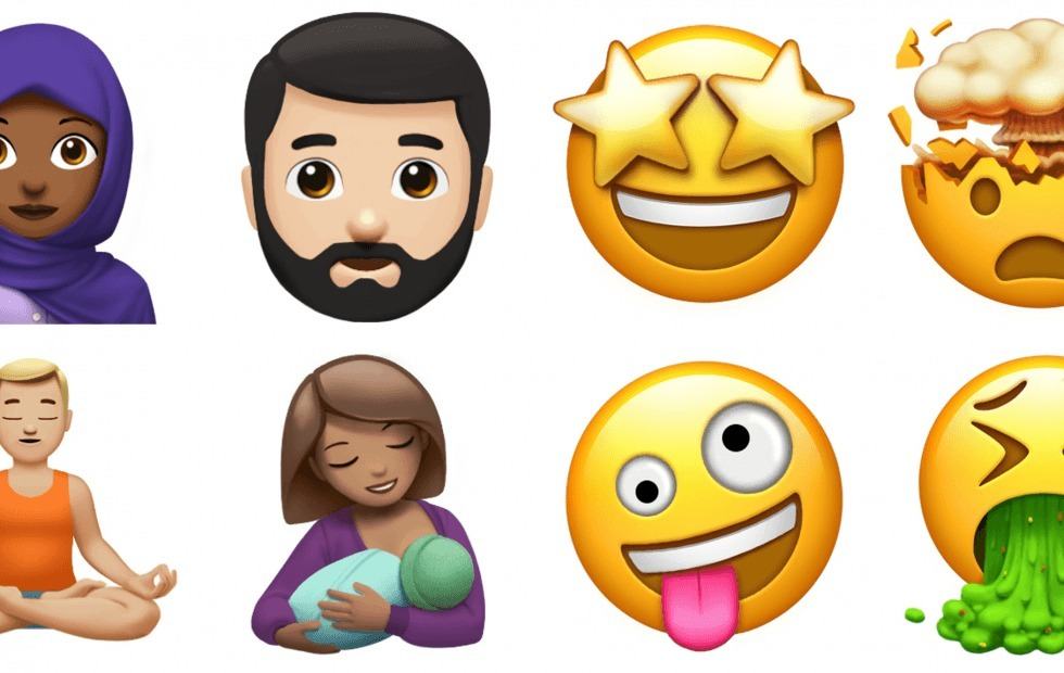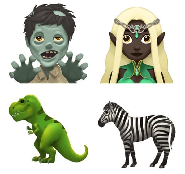 全新的 Emoji 分成 4 個不同類別,包括人物、面容、食物和其他,當中包括了神話傳說的生物或真實世界的動物如精靈、喪屍、恐龍和斑馬,亦有滿臉鬍鬚的男人、戴頭紗的女人、母乳餵哺的母親等富有特徵的人物。新款 Emoji 還有一些受歡迎的食品,例如三文治、椰子,亦有做瑜伽的人等等,喜歡健康的人應該會很合用。