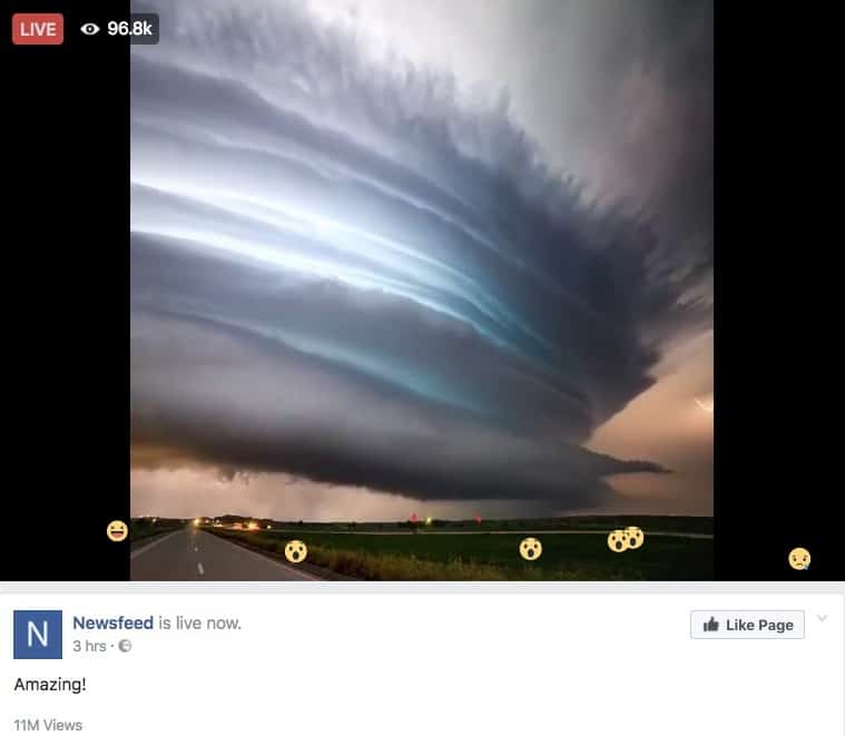 這個 Newsfeed 專頁直播的並非真正的龍捲風實況,甚至並非真正的龍捲風影片,而是一幅 Gif 動圖製成的影片,再配上不斷重複的行雷閃電聲效。直播有超過 9 萬人在同一時間觀看,共有 1,400 萬次點擊觀看、36 萬次分享、25.6 萬網民留言,俾 Like 等反應更超過 90 萬次。雖然不少網民在留言直指直播造假,但無法阻止網民繼續觀看和分享。