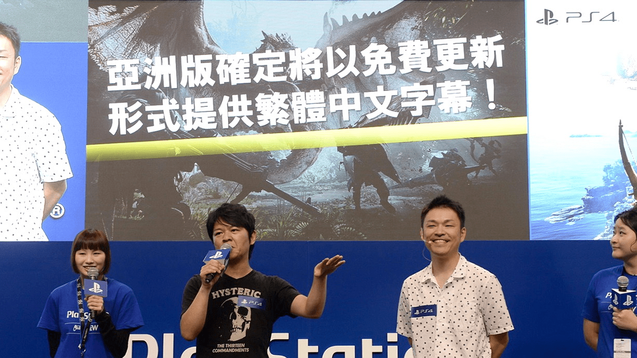其實直到現時為止,關於 Monster Hunter World 的消息都不算太多,就算在 E3 和今次動漫節上的即場實際示範,其實都只是「點到即止」,都沒有給各位獵人有太多的驚喜。至於今次動漫節上,最大的好消息就必然是公布會推出繁體中文字幕。在之後的訪問環節,就問到繁體中文字幕是否會與遊戲同步推出,而總監德田先生就表示,繁體中文字幕仍在努力研究當中,實際推出日期就要等待日後的公布,但就表示繁體中文只會在 PS4 上推出,xbox 和 PC 版的玩家就無緣獲得。