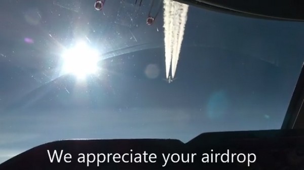 話說在 Jamaica Aviation Spotters 的 Facebook 專頁上,較早前就公開了一段影片。片中顯示一位波音 747-8 飛機機長,當時就發現到一架新加坡航空的波音 777 客機在其附近,於是便在駕駛艙內拍低了幾張 777 客機的相片。其後他想將相片向對方分享,於是便決定用無線電通知對方,得知 777 原來在其 1,000 呎之上,於是便表示想用 AirDrop 將相片傳送過去,而其後對方打開 AirDrop 後亦真的收到,如無意外這應該是首次有兩架飛機的人在空中使用 AirDrop 的案例。