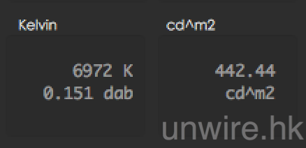 ▲筆者都有試過其他顯示模式的白平衡數值,當中「熒幕增強」模式,白平衡數值與預設的「智慧環境適應(標準)」接近,也達到 7956K,同樣屬於偏冷色向。