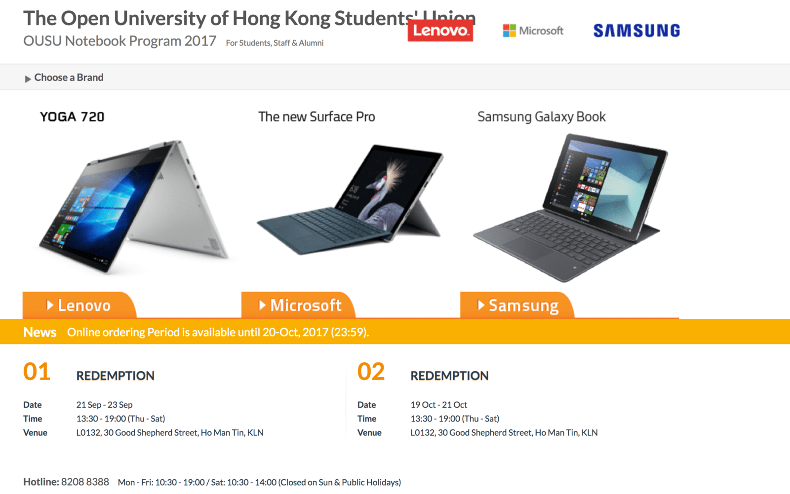 Lenovo、Microsoft、Samsung 購買連結:https://www.hknotebook.com/np17/ouhk/