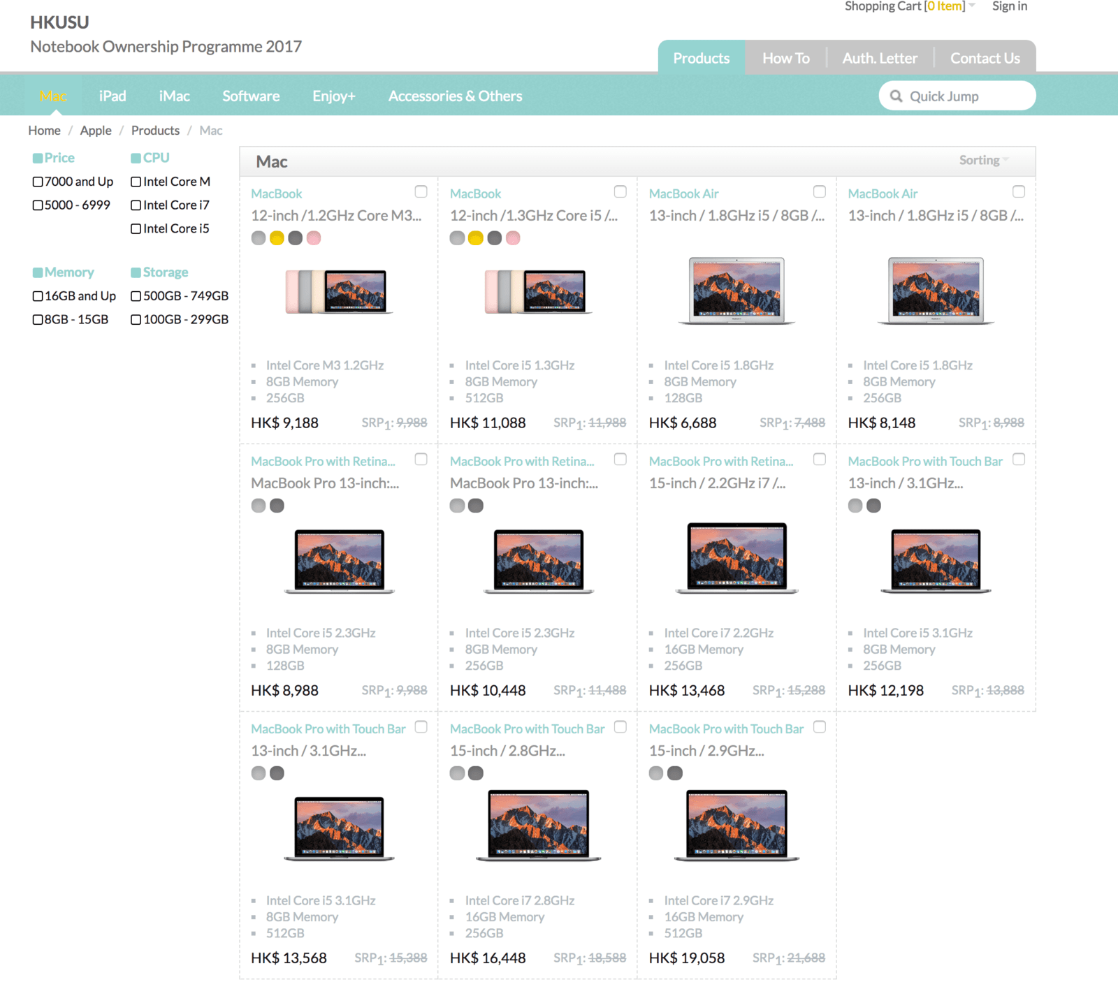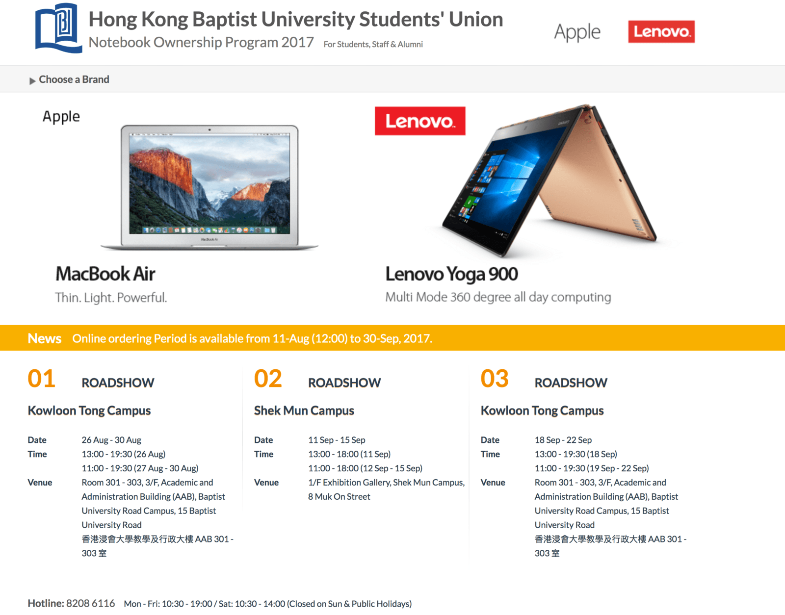浸會大學:https://www.hknotebook.com/np17/hkbu/ (Apple、Lenovo)