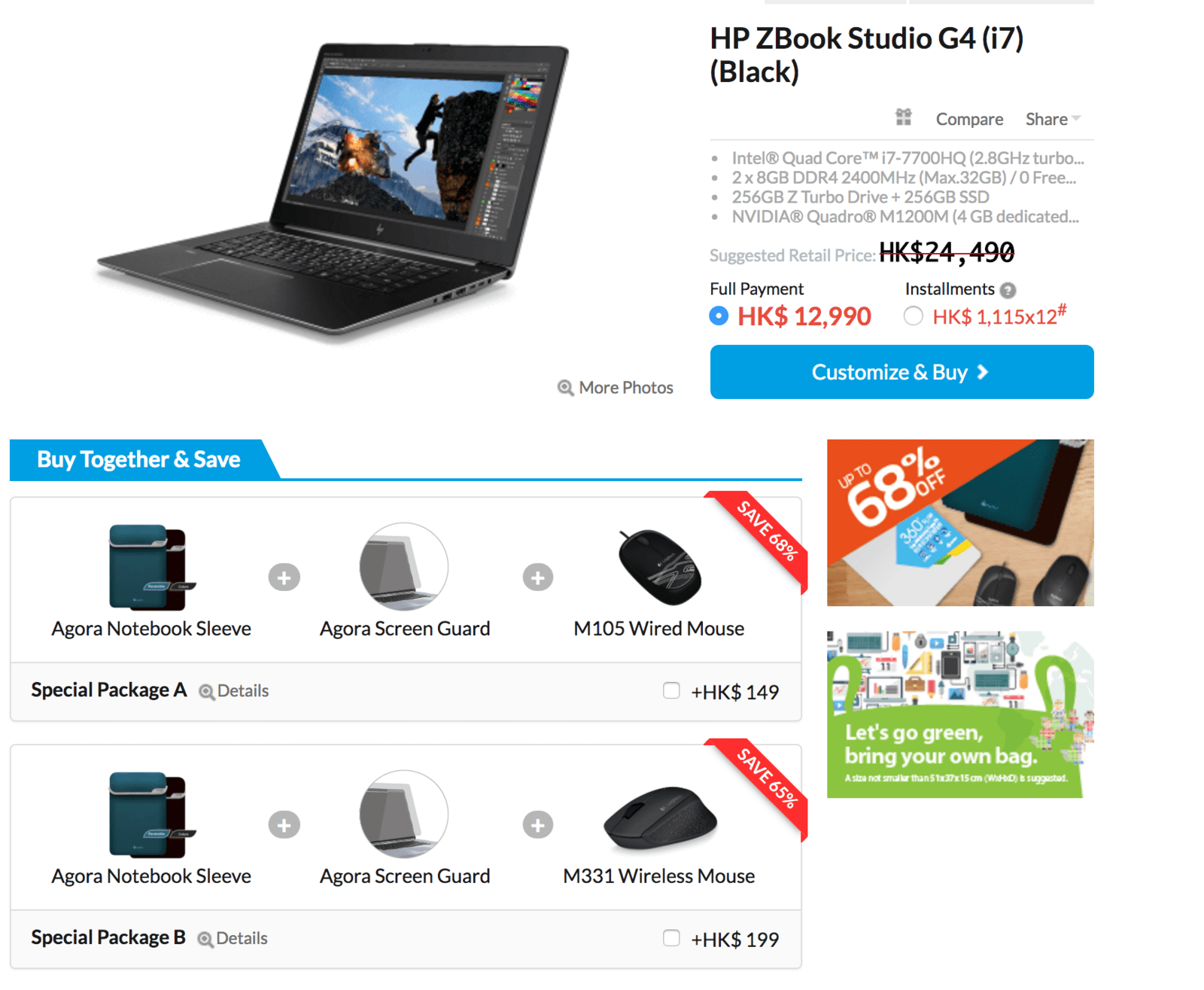 對於需要做圖執相的用家,亦可選擇高效能機款 ZBook Studio G4,採用 Intel Core i7-7700HQ 處理器、2 x 8GB RAM、256GB Z Turbo Drive + 256GB SSD 及 NVIDIA Quadro M1200M 獨顯,售價由原價 $24,490 劈至 $12,990,優惠足足接近半價!