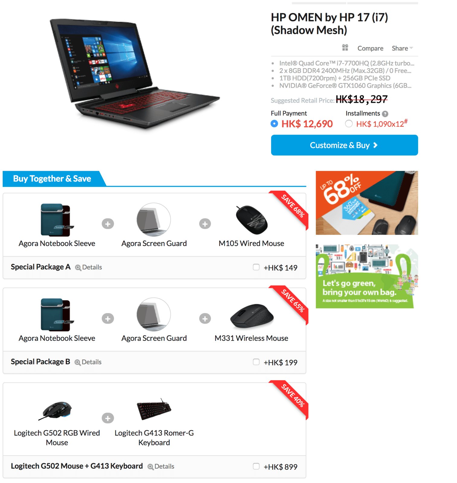 另外如果你是就讀香港教育大學,又喜歡打機的話,不妨考慮入手HP 最新推出的電競機款 OMEN by HP 17,採用了第七代 Intel Core i7 處理器、2 x 8GB RAM、256GB SSD + 1TB HDD 混合式硬碟及 NVIDIA GeForce GTX 1060 獨顯,十分適合熱愛打機甚至有玩電競比賽的用家使用,售價亦十分抵玩,由原價 $18,297 劈至 $12,690,足足是 69 折!
