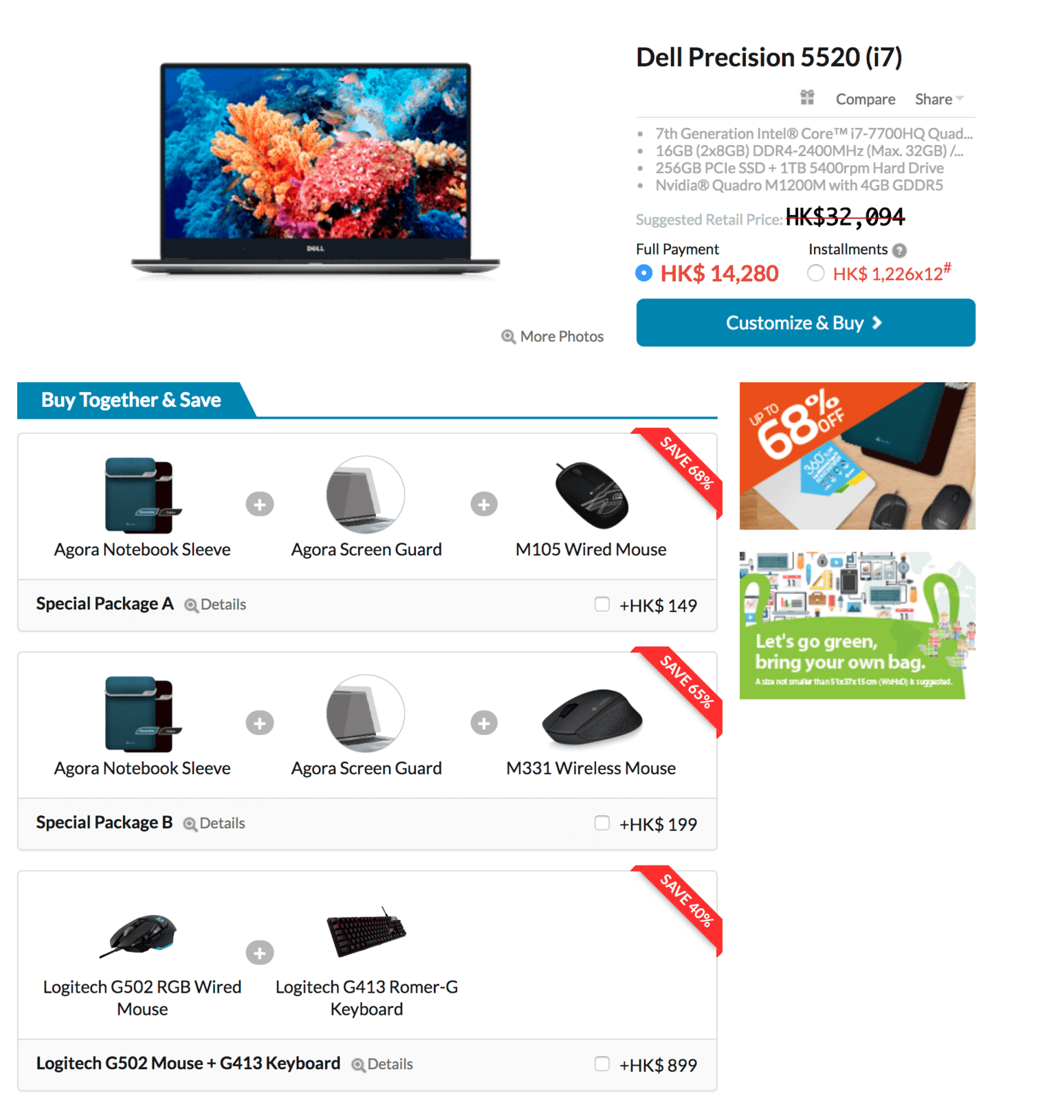 好了,為大家分析完如果選擇適合自己使用的機款,現在就為大家介紹各大院校的 Back To School offer 啦香港大學及香港科技大學今年的 BTS 優惠,合共有 4 個品牌選擇(如不將無院校限制的 ASUS 計算在內),比較後筆者認為如果大家想購買手提電腦的話,購買 Dell 機款肯定是最抵玩,當中 Latitude 5280 (i5) 這部 12.5 吋機款及 Latitude 5520 (i7) 這部 15.6 吋機款最抵買,足足是原價的 45 折左右!而且效能上都十分好,分別採用第七代 Intel Core i5 / i7 處理器,記憶體亦分別有 8GB / 16GB,而儲存空間方面,前者有 500GB SATA HDD,後者更採用 256GB SSD + 1TB HDD,如果要剪片執相的用家,後者更內建 NVIDIA Quadro M1200M 獨顯。當然,這兩部機款只是屬於 Desktop Replacement 機款,機身肯定會較重,但總比買桌面電腦放在宿舍為佳。