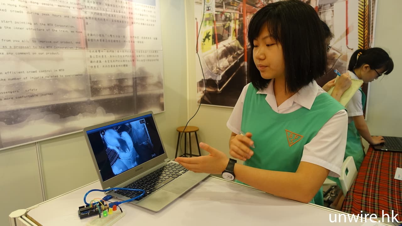 不少市民每日返工放工都要逼地鐵,繁忙時間有時甚至要等幾班車先上到。庇理羅士女子中學學生就研發出「燈車易」系統,分析各個車廂的乘客密度。系統會發出提示燈,亦可連接手機應用程式,讓乘客及早了解車廂的情況,選擇到空間較多的車卡上車,避免成為「人肉三文治」,作品更獲得第 50 屆聯校科學展覽計劃書設計比賽冠軍。