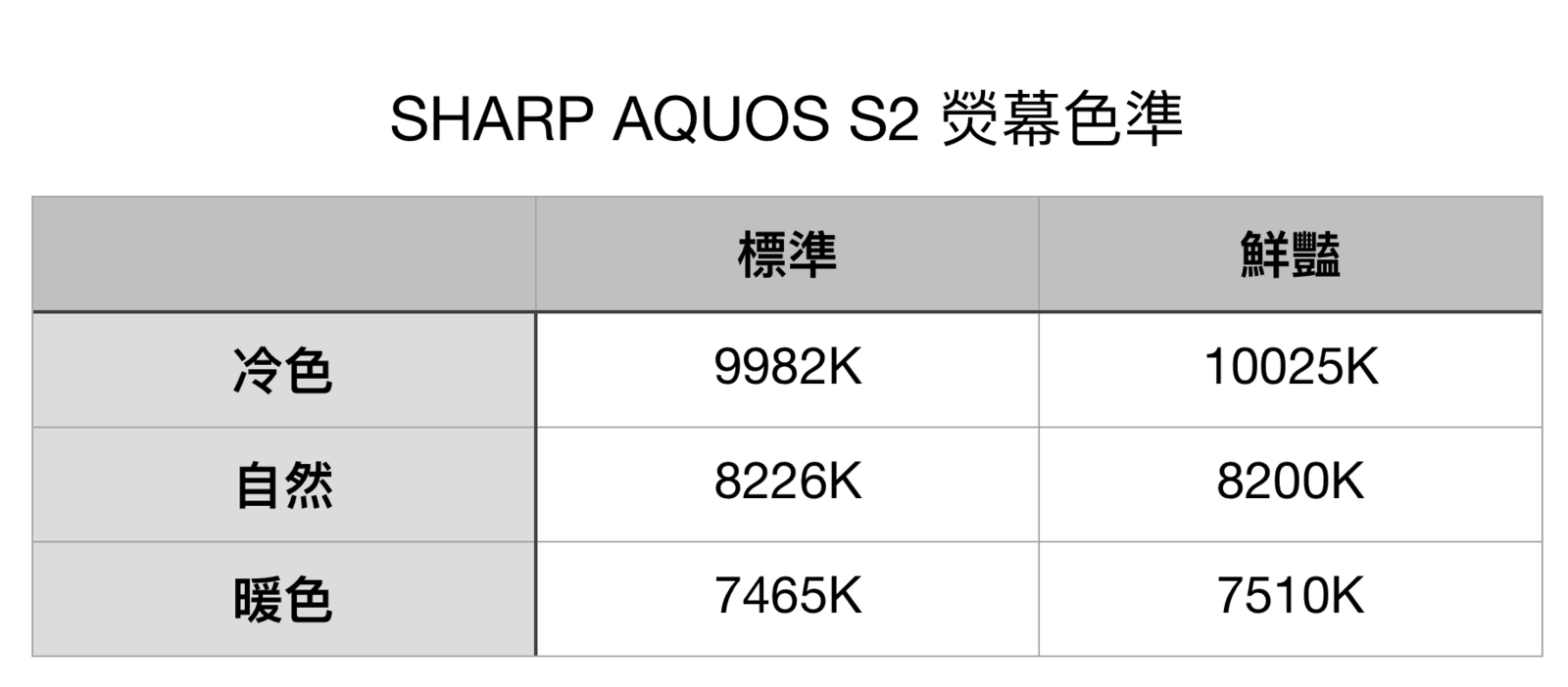 不過顏色上,就似乎走較鮮豔路線,筆者亦用過專業熒幕測試工具 Spyder 5 測試過,發覺無論是採用甚麼顯示設定,S2 的熒幕均有偏冷色的傾向:採用預設的自然色溫 + 鮮豔熒幕效果,白平衡數值已達到 8200K;如果採用冷色色溫 + 鮮豔熒幕效果,白平衡數值更達到 10025K,極為誇張!即使筆者改用暖色色溫 + 鮮豔 / 標準熒幕效果,白平衡數值也分別只能降到 7510K 或 7465K,雖然暖色了一點但仍然屬偏冷色。所以如果有意入手此機的 wire 民,要對熒幕採用偏冷色的取向有心理準備。
