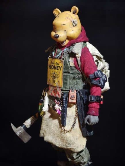 小熊維尼(Winnie the Pooh)原本是可愛的卡通人物,只喜歡蜂蜜對世事不聞不問。但日本就有模型玩家,對小熊維尼模型進行魔改造:手上拿上斧頭,穿上武士裝甲後體型變得強壯。不過他的溫柔笑臉仍掛在面上,反而令人覺得比起一般武士模型更入型入格。