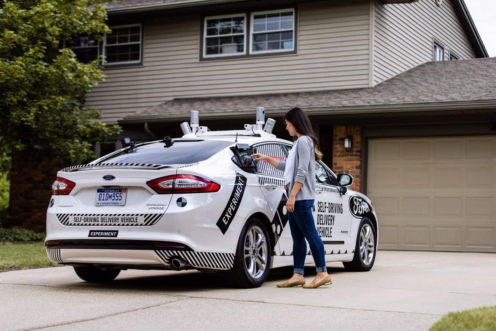 薄餅連鎖店 Dominoes 最近和汽車生產商 Ford 合作,在美國密歇根州 Ann Arbor 測試無人駕駛外賣車運送薄餅的服務。願意協助測試的顧客會獲得一組密碼,當外賣車駛到他們家門前時會獲得短訊通知,客人只需在後座車門旁邊輸入密碼,就可以領取訂購的食品。這部無人駕駛外賣車經過改裝,除了有自動駕駛系統,還有確保薄餅熱辣辣的保溫裝置。內置 GPS 亦方便客人透過手機 App 實時追蹤外賣車的位置,和預計抵達的時間。