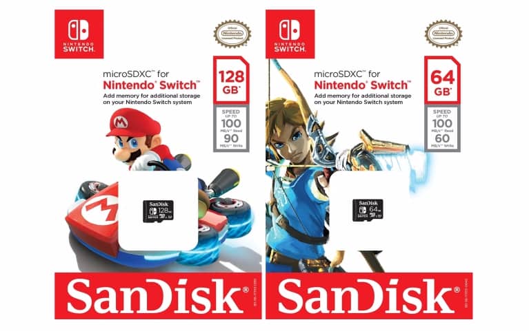 任天堂 Switch 專用 microSDXC 卡有 64GB 和 128GB 兩種容量可供選擇,任天堂和 Western Digital 組成合作關係,前者授權推出 Switch 專用記憶卡。兩間公司都未有透露,專用記憶卡有什麼特別為 Switch 而設的功能,最大可能是跟其他 SanDisk 的記憶卡沒有分別,64GB 版本的讀寫速度為 100MB/s 和 60MB/s,而 128GB 版本則為 100MB/s 和 90MB/s。