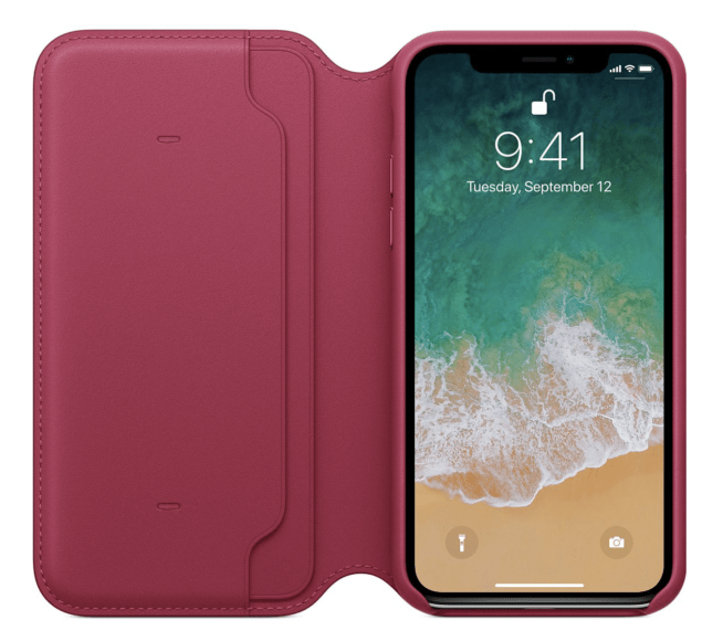 「iPhone X 皮革 Folio 護殼」有四種顏色,分別為灰褐色、黑色、莓紅色,以及宇宙藍色。目前此護套在蘋果官方網站標價港幣 $788 ,尚未正式發售,相信會跟 iPhone X 正式發售的日期 11月3日 一同發售。