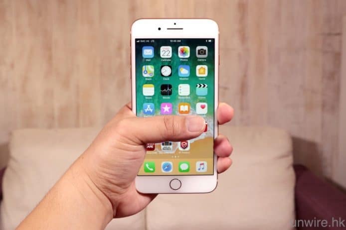 iPhone 8 Plus 轉用了玻璃機背,筆者覺得在外表上是比以往「吸睛」的,明顯是比較吸引,至於有 wire 民表示新 iPhone 與過往的亮黑版 iPhone 7 / 7 Plus 差不多,筆者單憑手上的金色版就覺得兩者不是相差很遠,即使今早身處 Apple Store 的娜姐看過 iPhone 8 黑色版實機,也覺得分別不大,要細睇才覺得表面沒有過往亮黑版那麼「拋光」。但有一項肯定的是,轉用了玻璃機背後,iPhone 8 Plus 明顯比 7 Plus 重少許,誠然本身 7 Plus 已經不算輕,筆者平常也會套上原廠的皮革保護殼,使用起來已覺得有許重,換上在 iPhone 8 Plus 上,相信要「裸機」才可維持過往拿在手的手感了。