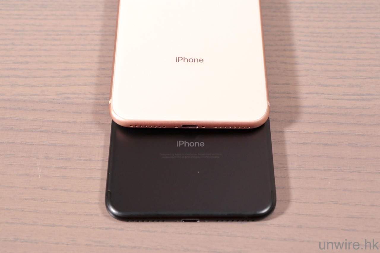 ▲iPhone 8 Plus 最大不同仍然是在機背,從上圖已可見到 iPhone 8 Plus(左)改用了玻璃物料,而 iPhone 7 Plus(右)就仍是採用金屬物料。