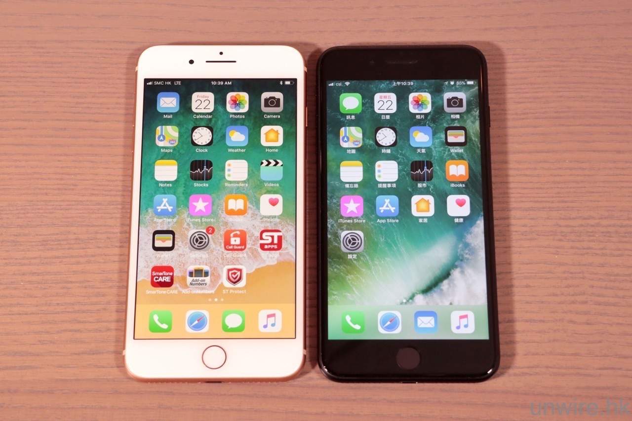 ▲正面來看,iPhone 8 Plus(左)與 iPhone 7 Plus(右)基本上是一模一樣的。