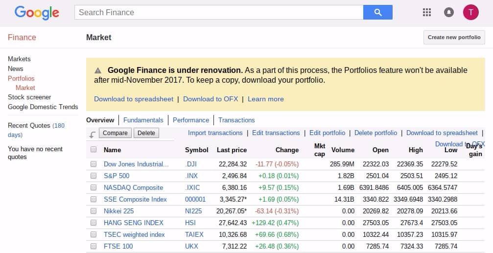 如果你有使用 Google 財經的「投資組合」功能協助你的投資,現在是時候另覓其他服務了,因為 Google 日前宣佈將會在界面設計我功能上作出改變,在今年 11 月中改版完成後,Google 財經的「投資組合」功能將會暫時停止服務。