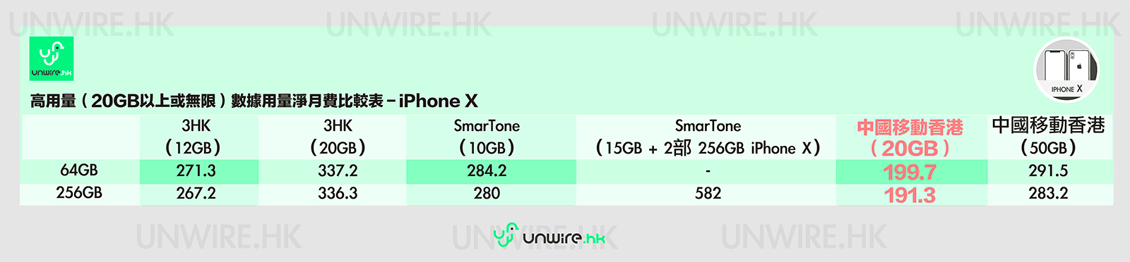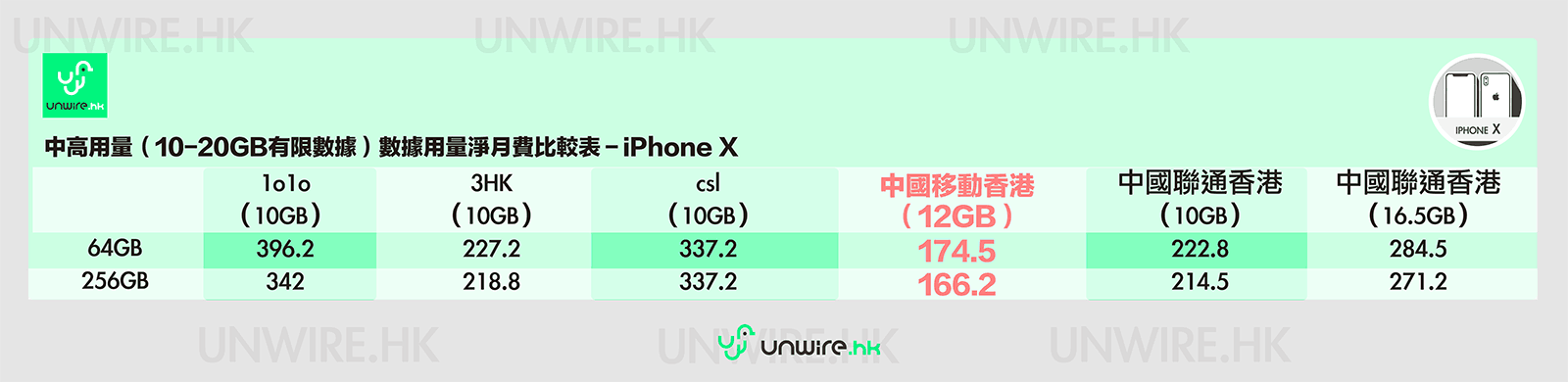 [UNWIRE.HK] iPhone X 香港各網絡商月費計劃比較