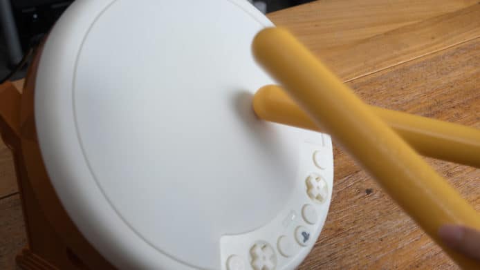 鼓外型不錯,迷你得來很可愛。擊鼓的感應有點不同步,雖然可以調較,但都較手掣難掌握。鼓身造工不錯,但略嫌太輕,雖然鼓座已有防滑膠,但玩得大力一點就會移走,在玩的途中要調較位置,不免分了心。敲擊感很好,始終可以模擬打鼓,比拿著手掣投入得多。但記者試過因太過用力揮動鼓棍而脫手飛走,大家玩時都要小心,注意安全啊。