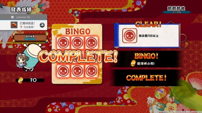 ▲中文版的BINGO會寫成「賓果卡」,同樣是做任務來換「咚小判」。