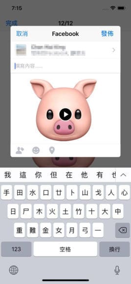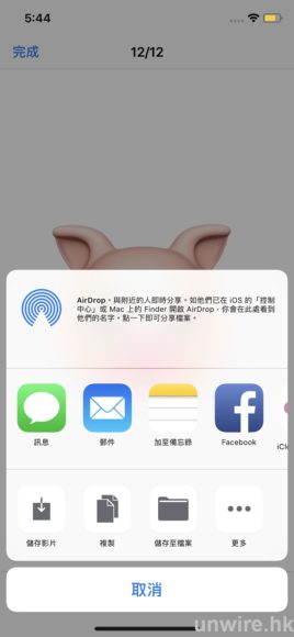 ▲按左下方的按鈕,就可下載Animoji或分享到第三方通訊平台。