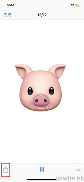 製作完Animoji後,按一下Animoji即可播放影片。再按影片右下方的按鈕,更可下載影片至手機中或直接分享至不同的通訊平台,如Whatsapp等,十分方便。