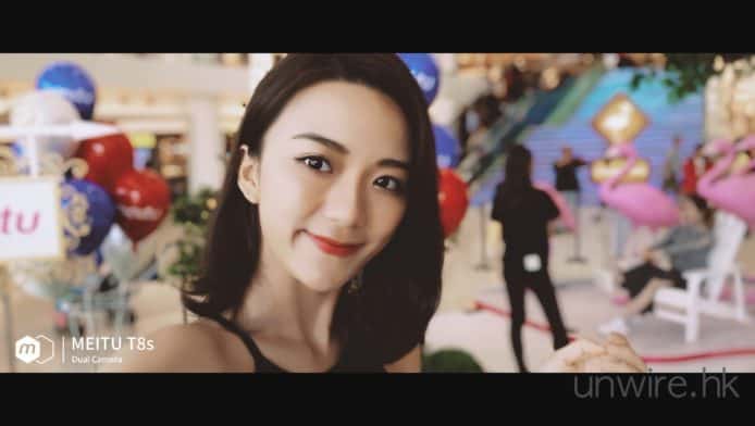 美圖今次推出的 T8s,顧名思義就是早前推出 T8 的升級版,最特別之處在於前置鏡頭方面,採用了雙 1,200 萬像素鏡頭設計,而雙鏡頭合起來,就可以影到淺景深效果,加上本身美圖最擅長的各種美顏效果,令大家自拍時更加漂亮。此外,今次還在自拍鏡頭中加入了電影級虛化效果,據官方表示可以拍出猶如電影中淺景深人像般的效果,筆者試過雖然未至於那麼誇張,但效果仍屬不錯。