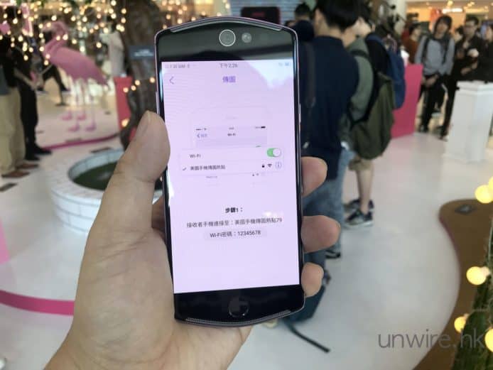 以往用 Android 手機拍攝了的相片,就算拍得再好,如果有朋友是用 iPhone,由於 iOS 的藍牙屬於「自閉」類別,不像 Android 手機之間可用藍牙互傳檔案,所以少不免要用各種雲端平台或者電郵,才能將無壓縮的原相與他們分享。在美圖 T8s 中,就內建了「閃傳」這個新功能,它在原理上與 iOS 的 AirDrop 是一樣的,也是使用 Wi-Fi Direct 技術,快速將相片傳送給對方。以後用了美圖 T8s,要與 iOS 用家分享相片,就不用再經雲端或者電郵了。