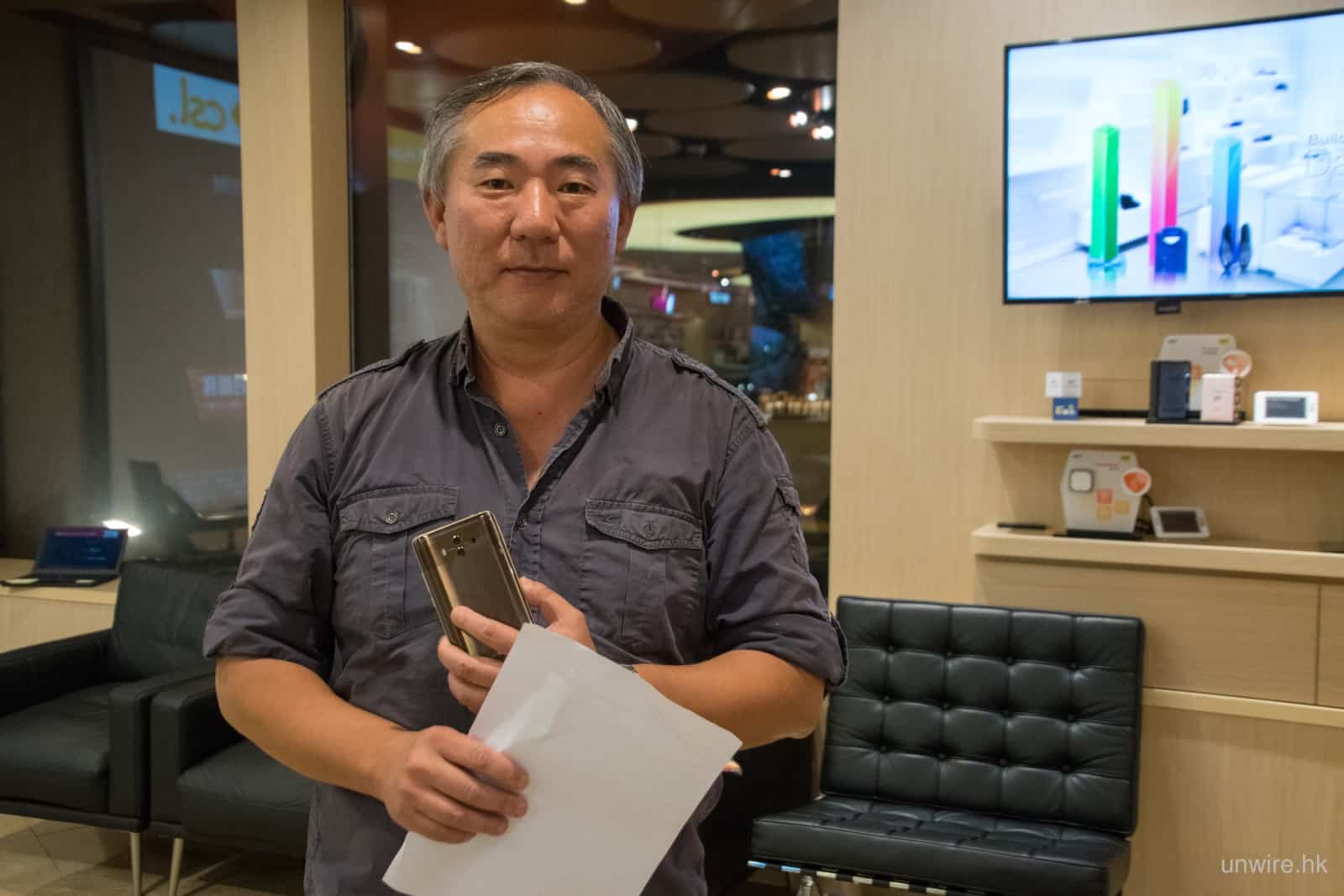▲ 蔡先生表示,Mate 10 最吸引他的地方是其相機,他自己使用的是華為 Mate 7,這次 Mate 10 的改進令他更想升級,因為其機身比起 Mate 7 更細,但有更大的熒幕,加上特大的電量亦更耐用,不過他說會等待 Mate 10 Pro 才買!