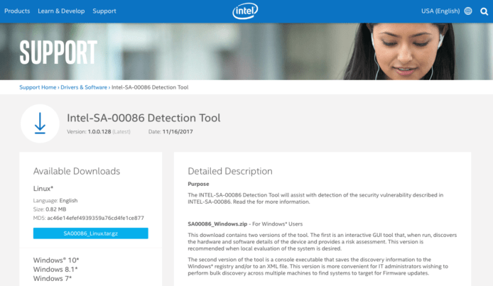 檢測工具「Intel-SA-00086 Detaction Tool」下載網址:https://downloadcenter.intel.com/download/27150