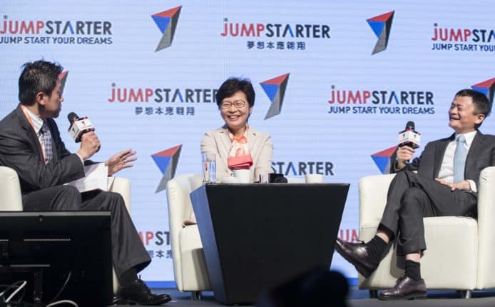 由阿里巴巴創業者基金、數碼港及香港科技園公司合辦的「JUMPSTARTER 2017」創業比賽,今日(21日)於會展舉行決賽。除了一眾初創企業參賽者,全晚最受矚目的應該是微電影中打敗一眾武術高手的阿里巴巴主席馬雲及「好打得」特首林鄭月娥的對談。