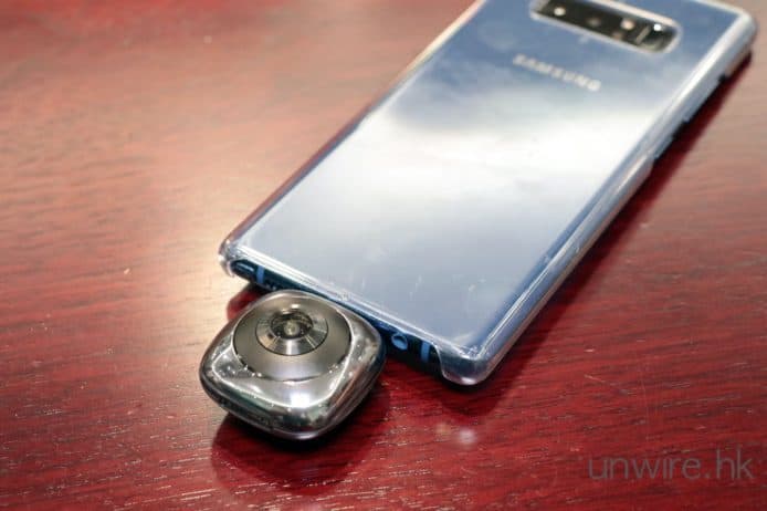 ▲前後均設有 1,300 萬像素鏡頭,可拍攝 360 度相片及影片。