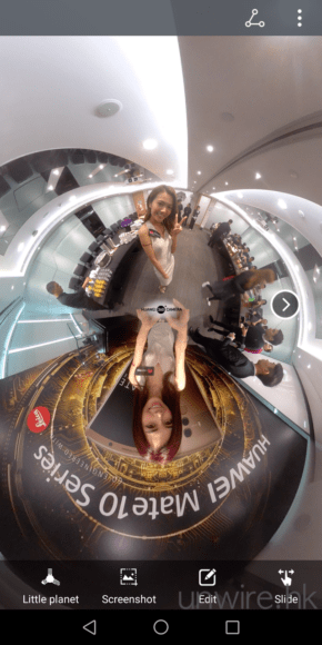 ▲最後一個就是比較少在千元價位 360 全景相機見到的 Little Planet(小星球)模式,可以在同一介面見盡兩邊鏡頭拍攝的影像。另外,如果大家將相片分享到社交平台(例如:Facebook),其他朋友可以將相片撥左撥右瀏覽 720 度相片。