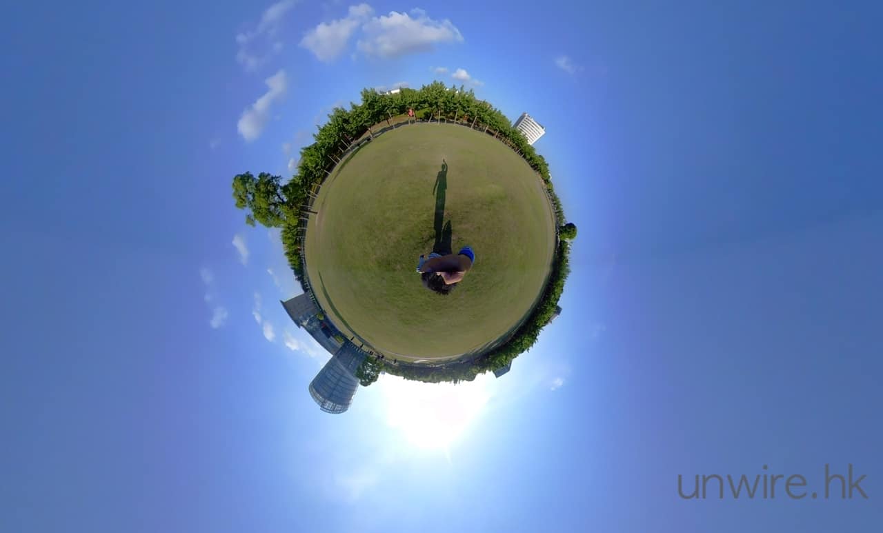 ▲最後一個就是比較少在千元價位 360 全景相機見到的 Little Planet(小星球)模式,可以在同一介面見盡兩邊鏡頭拍攝的影像。另外,如果大家將相片分享到社交平台(例如:Facebook),其他朋友可以將相片撥左撥右瀏覽 720 度相片。