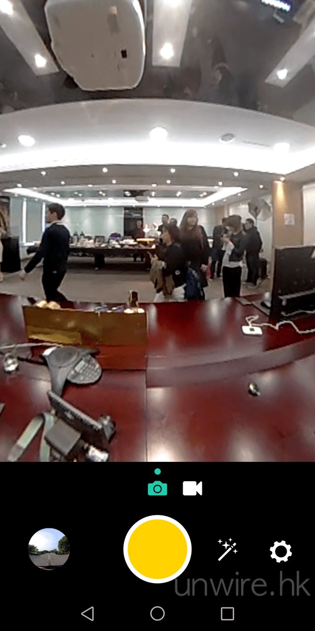 至於 APP 使用起來都很方便,只要接駁了 EnVizion 360,就可以使用了。一進入就是拍照介面,按一下攝錄機圖示就可以轉為拍片模式。當拍攝了相片後,進入相片瀏覽介面後,就可以在 4 種模式中選擇一種儲存,包括:Fisheye(魚眼)、Perspective(平面)、Crystal Ball(水晶球)及 Little Planet(小星球),當中最特別的肯定是小星球模式,因為不是很多 360 相機可將相片儲存為這個模式,這樣無論是身邊環境,甚至是天空、地面都可以合併為同一張相片,值得一讚!