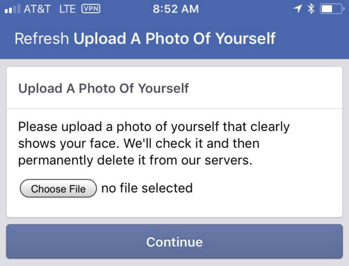 用戶需要上載未於 Facebook 發表過的相片,一旦核實過程完成,Facebook 就會將上載的相片從伺服器永久刪除。Facebook 重申,以自拍照核實身份只是他們採用的其中一種方法。