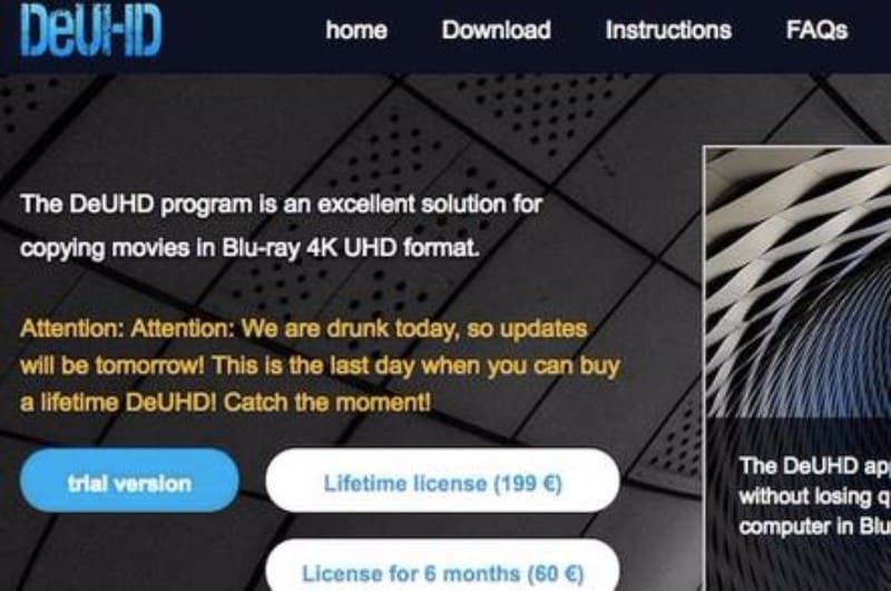 受影響的軟件 DeUHD 是用於破解 4K UHD 的 Blu-Ray 影碟保護,Arusoft 會每星期推出一次更新,供用戶破解影碟。Arusoft 早前宣佈由原本以 199 歐元售賣永久使用權,改為 60 歐元 6 個月使用權的方式銷售。不過程式員飲醉後,在官網表示每遇更新延期,同時提示網民把握機會購買永久使用權,這對公司構成損失。
