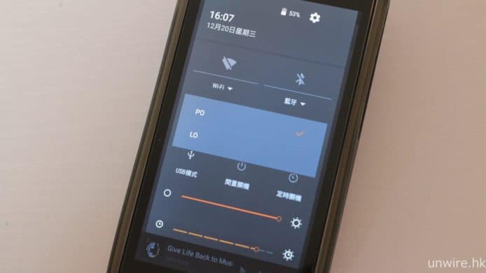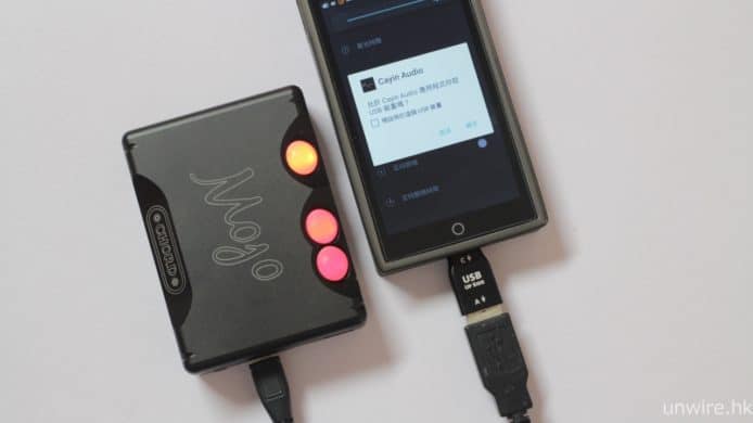 ▲ 而設定為 USB Audio 輸出模式時,則可透過 USB OTG 功能連接外置 USB DAC。