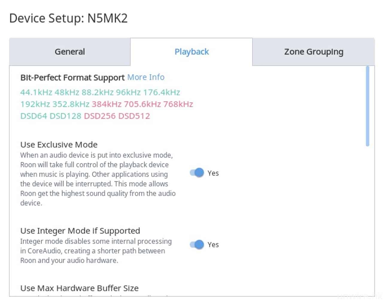 ▲ 官方表示最高支援 24bit/384kHz PCM 及 DSD128,但實測時 PCM 則最高只支援 352.8kHz。