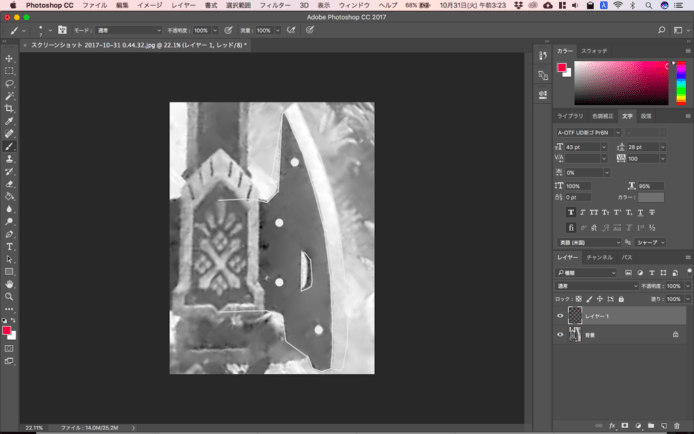 製作者 @Kantama_ 除展示完成品的影片外,還在網路上介紹這個盾斧的製作過程。首先是利用卡紙畫好它的外觀。參考資料是遊戲的畫面截圖。他從 YouTube 影片中切取了盾斧的平面圖,再於一般紙箱上切取。