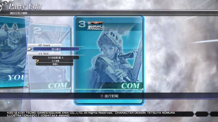 本作是角色外觀設計非常華麗,集合了 Final Fantasy 主要角色的大亂鬥對戰遊戲。雖然是由 Tecmo Koei 的 Team Ninja 小組製作,但角色人設上沒有太特別的違和感。而且對於一些沒有在 PS4 出現過的角色,會有一份新鮮感。遊戲性方面,可說是一款 FF 人物打鬥版的《GUNDAM VS.》遊戲。戰鬥方面,有點需要習慣的是你必須鎖定某一敵人才能有效攻擊,系統上又有分「召喚核心」以及多人模式「核心戰」,其實要切換的目標頗多,相信需要一點時間習慣。