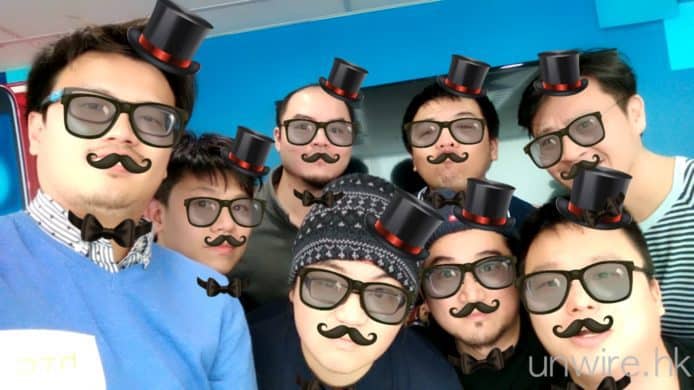 ▲就算一大班人一起 groufie,也可以用到這個 AR 貼紙,而且只要人臉夠大,都可以加上效果。