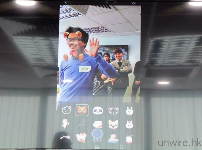 除了影相夠靚外,U11 EYEs 稍後(據官方表示是農曆年前)會加入 AR 貼紙這項功能,筆者在發佈會現場就試過這項未出街的新功能,發覺確實幾有趣,無論是前鏡或者主鏡,只要開啟了相關功能並選好貼紙樣式,之後只要鏡頭內有「人臉」而夠大的話,就會自動將效果加上臉上,又或者在畫面加入特別效果,而拍出來的相片效果都相當不錯,女生們應該會喜歡。而且它不只支援一人,筆者現場找來幾位記者一齊試,即使有 8 個人一起合照,都可以用得到,所以一大班朋友 groufie 時,不妨試試吧。