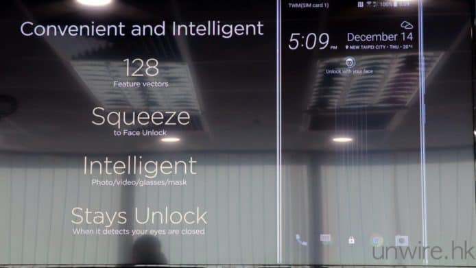 ▲相比一般人臉辨識,U11 EYEs 的做得比較安全,現場試過即使用登記人的相片也不能為手機解鎖。