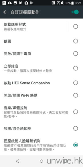 ▲開啟的辦法亦很簡單:只要登記了臉孔後,再進入 Edge Sense 介面,然後在短握壓動作中選擇「握壓啟動人臉解鎖偵測」,以後只要用手「揸一揸」機身下半部,再對準臉孔就可解鎖,十分方便。不過如果想同時使用 Edge Launcher,就要將它改為以長握壓動作啟動了。