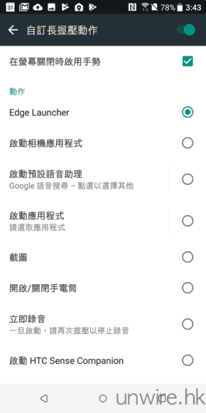 ▲介面上 U11 EYEs 與 U11+ 也是相同,也同樣擁有 Edge Launcher 這個快速程式啟動功能。