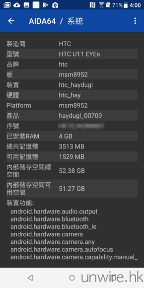 ▲另外有一點要注意的是,U11 EYEs 預載了的作業系統只是 Android 7.1.2 Nougat,而不是最新的 Android 8.0 Oreo,官方方面也表示未知是否為它提供升級至 Android 8.0 的服務,所以入手前大家要有心理準備可能會變「孤兒機」。