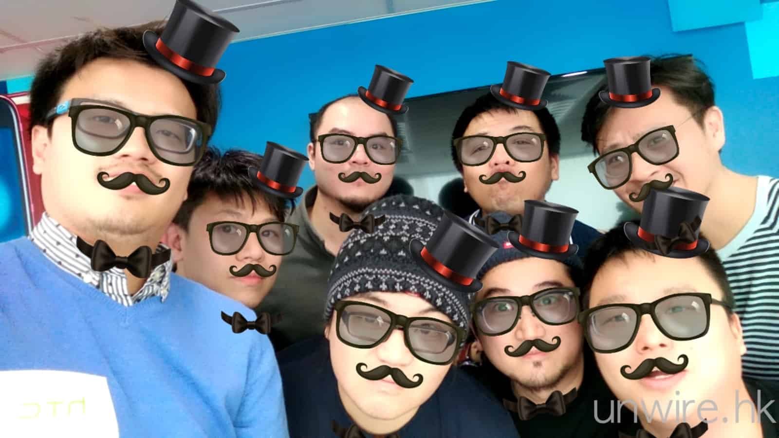 除了影相夠靚外,U11 EYEs 稍後(據官方表示是農曆年前)會加入 AR 貼紙這項功能,筆者在發佈會現場就試過這項未出街的新功能,發覺確實幾有趣,無論是前鏡或者主鏡,只要開啟了相關功能並選好貼紙樣式,之後只要鏡頭內有「人臉」而夠大的話,就會自動將效果加上臉上,又或者在畫面加入特別效果,而拍出來的相片效果都相當不錯,女生們應該會喜歡。而且它不只支援一人,筆者現場找來幾位記者一齊試,即使有 8 個人一起合照,都可以用得到,所以一大班朋友 groufie 時,不妨試試吧。