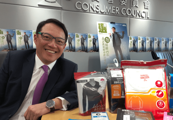 ▲消委會宣傳及社區關係小組主席陳錦榮指保暖內衣的實際保暖效能相距可以好大