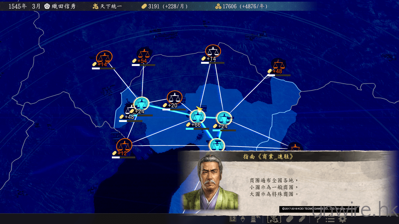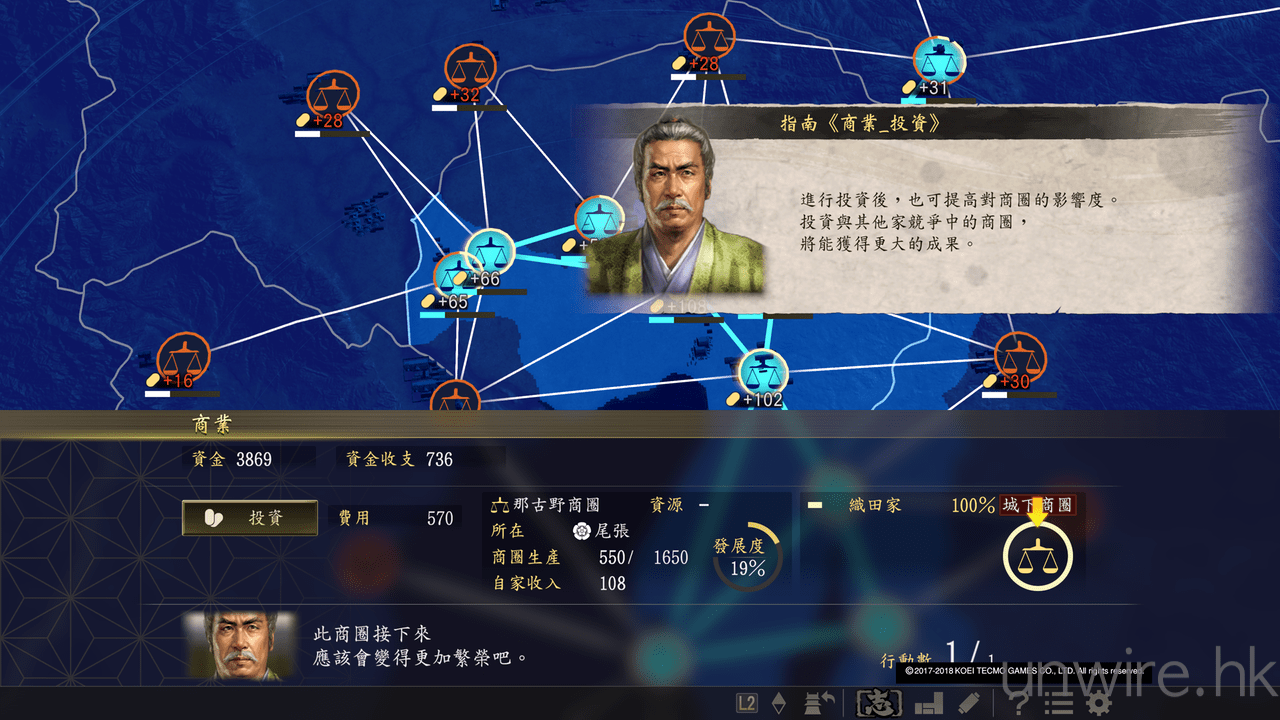 不過嘛,你可以在其他大名國境內的商圈投資,其他大名亦可以在你國境的商圈這樣做,這就變成幾個大名合作發展同一個商圈,當商圈發展值愈高,大家可以賺的錢就愈多。